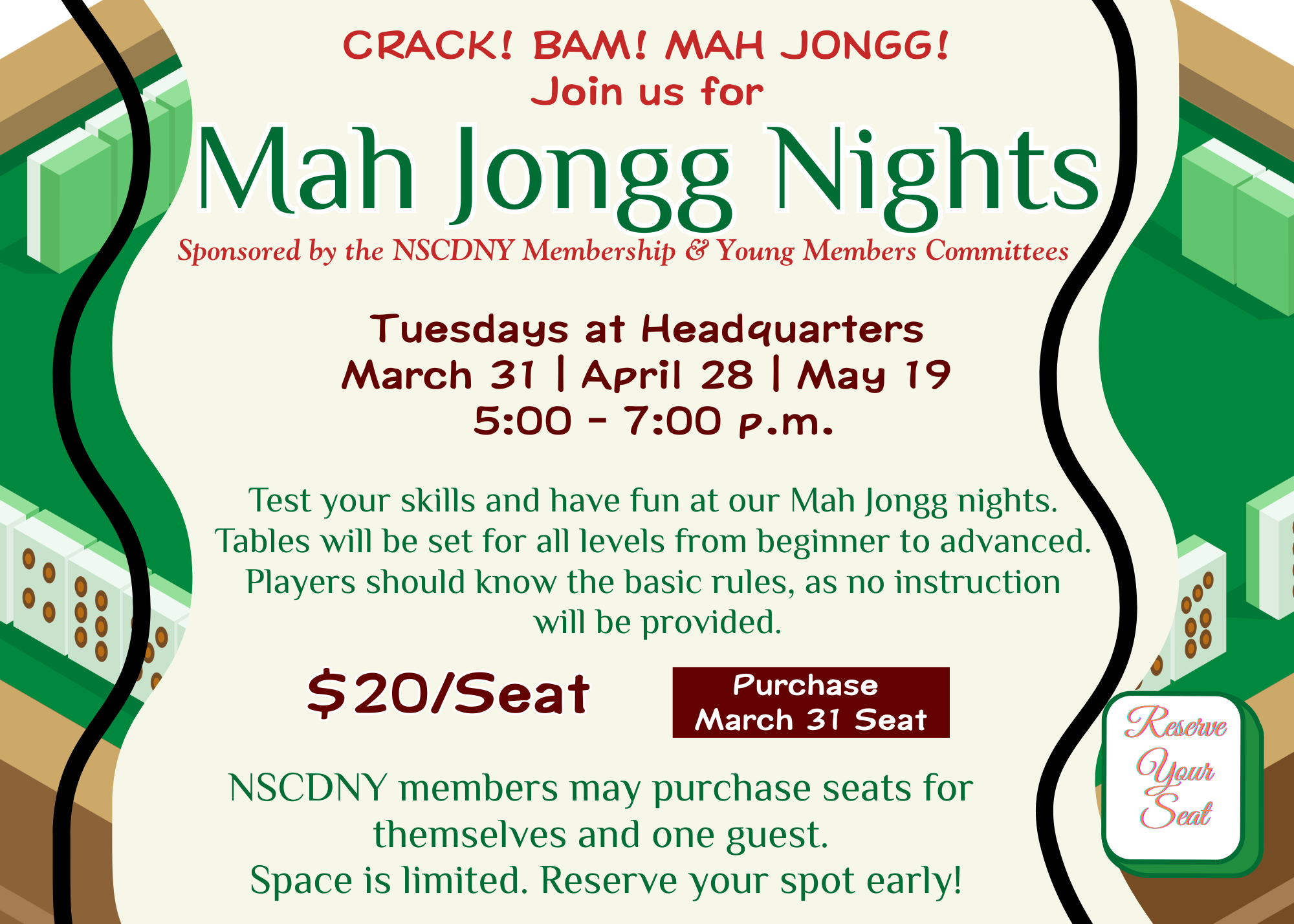 Join us at Headquarters as we kick off the new season and reconnect after the summer break! This is a wonderful opportunity to meet new friends, catch up with familiar faces, and explore how you can get more involved with our committees. The event is free for NSCDNY members. If you would like to bring a guest or a prospective member, please purchase a guest ticket for $25 below.